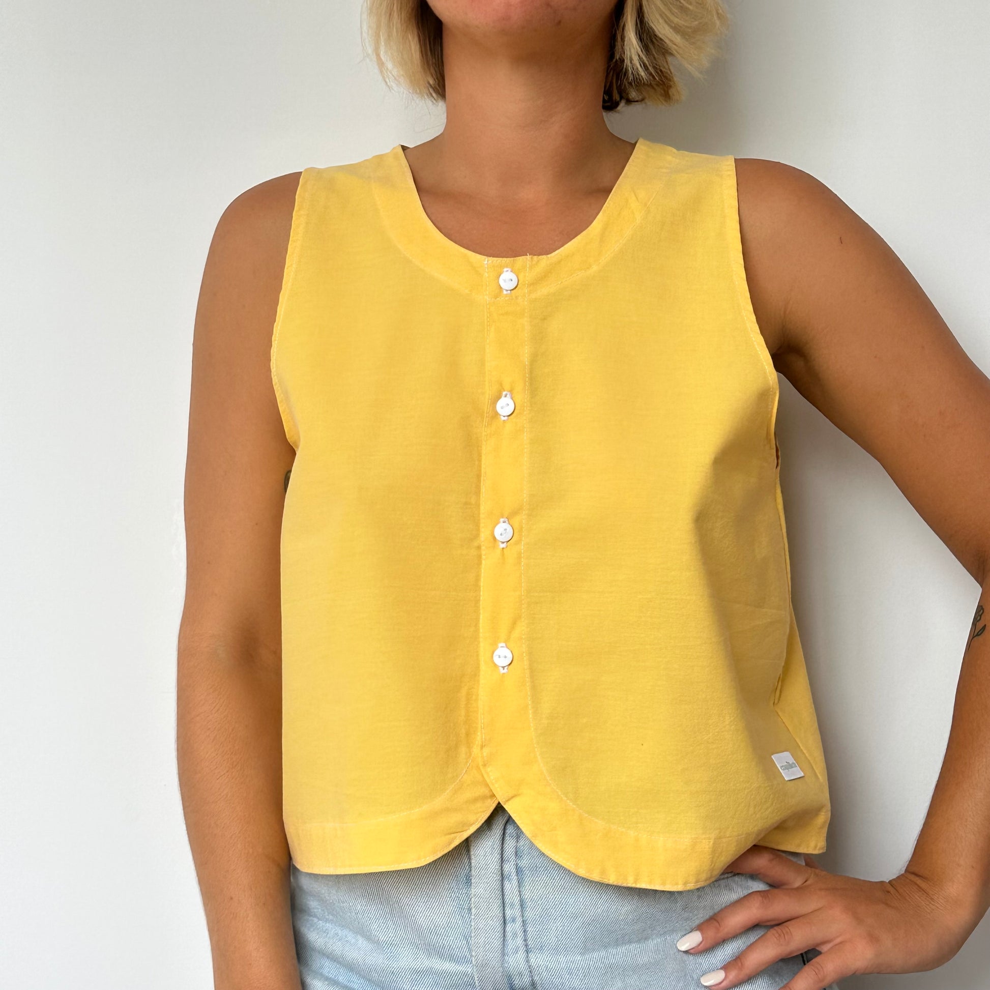 Haut Bouton Uni Jaune