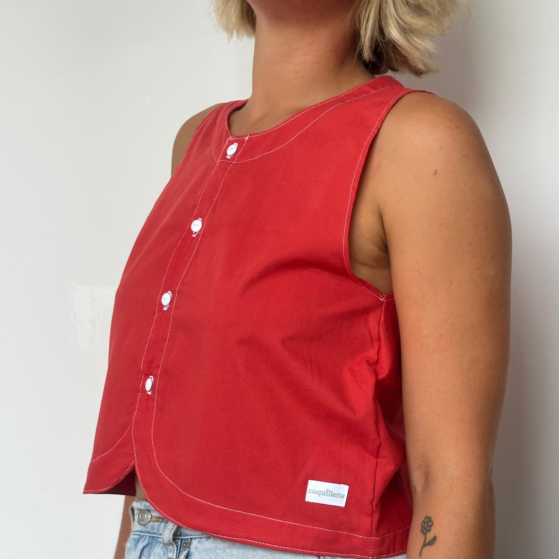 Haut Bouton Uni Rouge